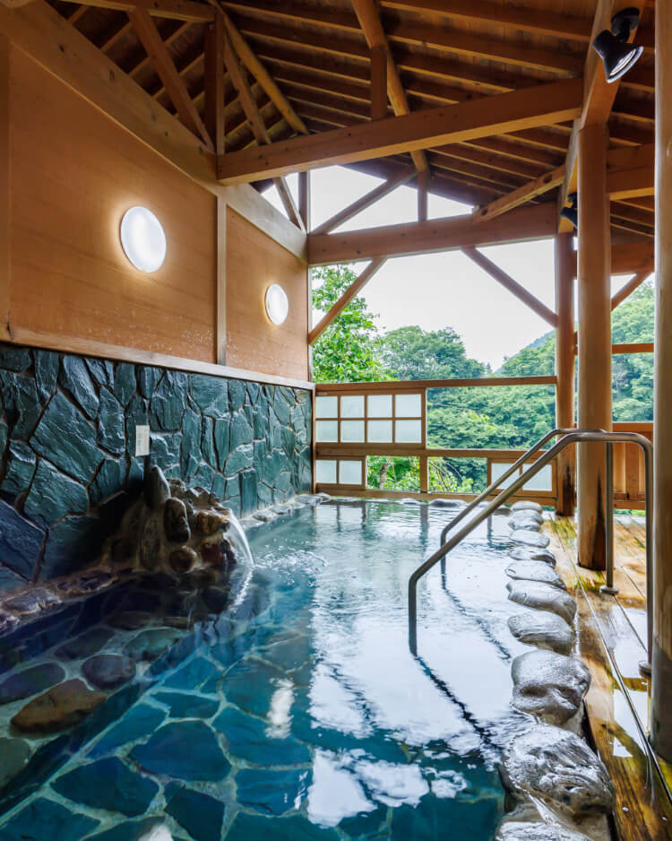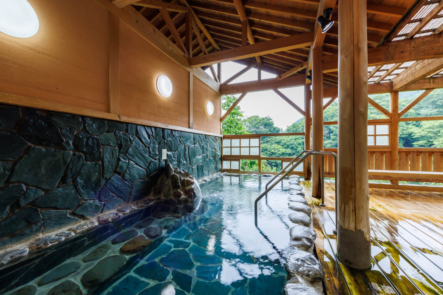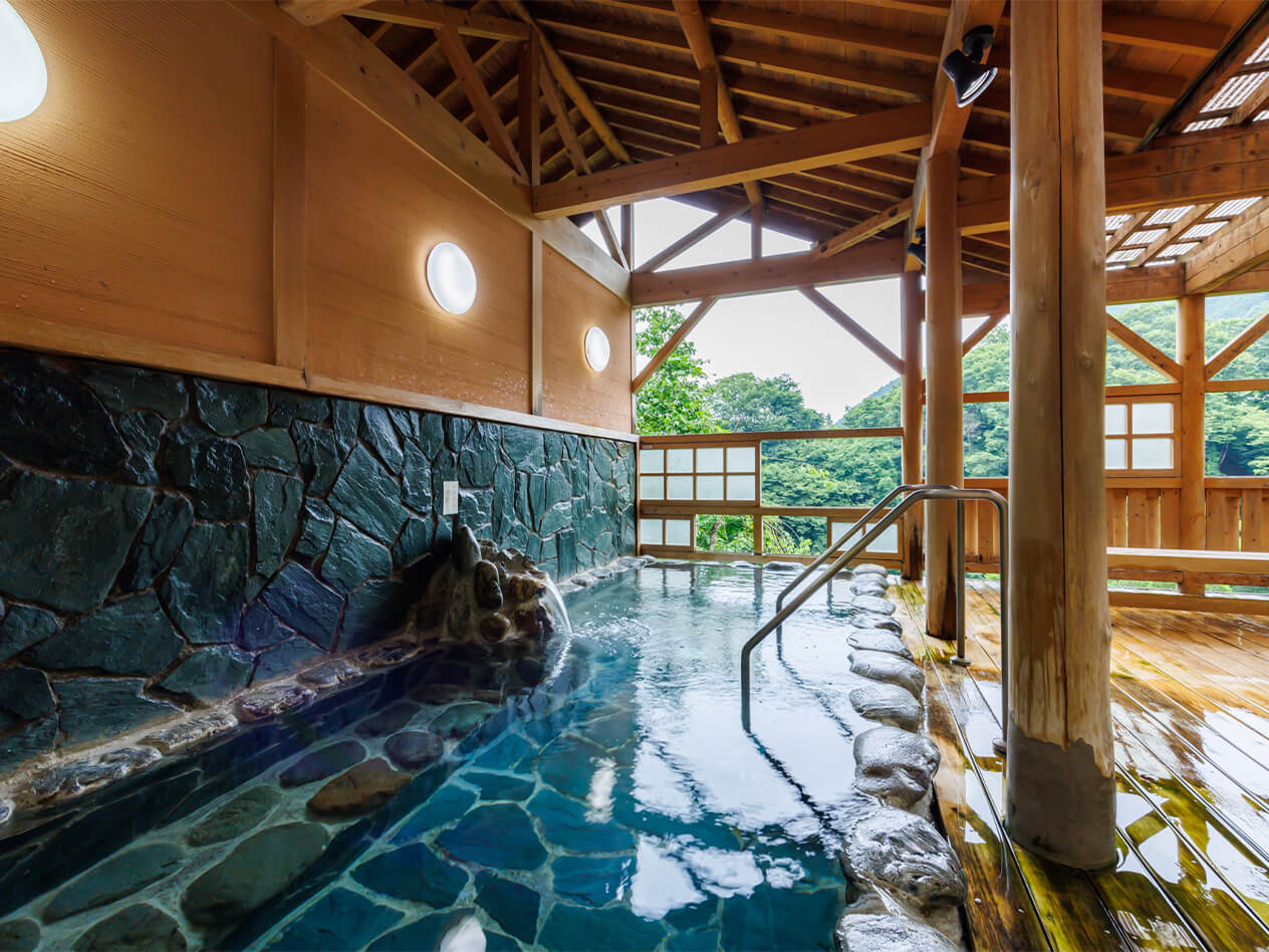 せっかくなので、朝風呂へ。朝の澄んだ空気に、川の流れる音が聞こえ、気持ち良いひと時を過ごせます。朝食はバイキング形式なので、もりもり食べて1日のパワーをチャージ。チェックアウトをしたら、一路「丸神の滝」へ向かいます。山々を見ながら、小森川沿いの山道を走るドライブ。運がよければ、野生の鹿にも出会えるかも?!