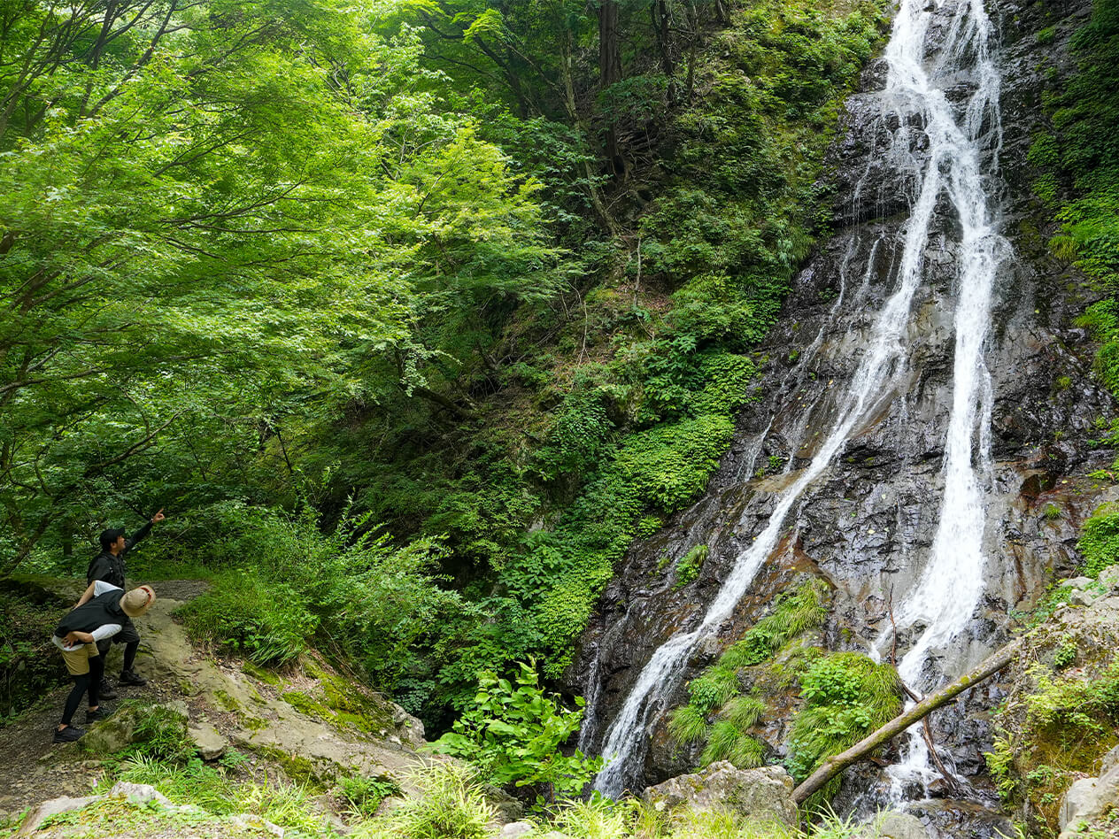 埼玉県で唯一、日本の滝百選に選ばれている「丸神の滝」を目指してトレッキング。ブナ林に囲まれた山道を、水と風の音を聞きながら心地よく歩みを進めます。30分ほどで姿を現す「丸神の滝」は眺めているだけで、心が澄んでいくようです。緑と水に囲まれた空間はとても清々しく、深呼吸をすると新鮮な空気が体いっぱいに広がってリフレッシュ!