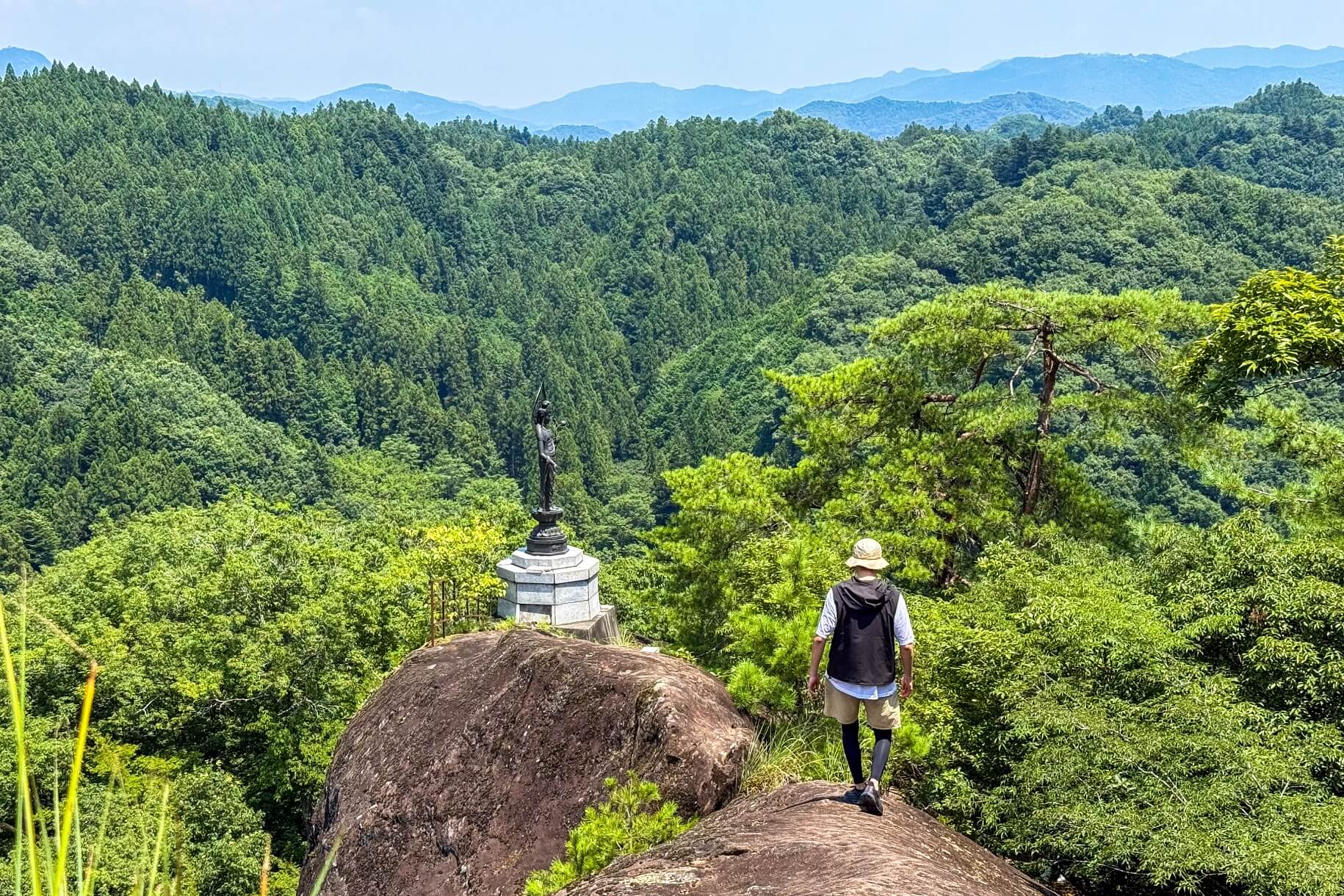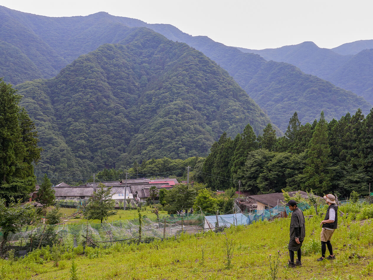「丸神の滝」とセットで訪れるのがおすすめ、と地元の人に教えてもらい向かったのが「煤川(すすかわ)集落」。車を停めて数分斜面を登ると、山肌に長屋が25軒ほどびっしりと並ぶ姿が現れます。霧がかかると、その姿はまるで“マチュピチュを彷彿とさせる神秘的な風景”(地元の人談)。さらに斜面を登ると、山々を一望できる展望スポットがあり、天候次第では雲海に出会えることも。※住宅や畑の敷地内には立ち入らないようお願いします。