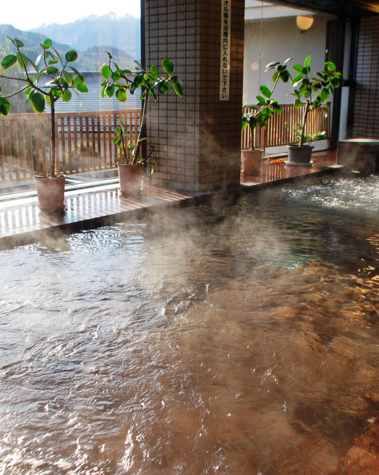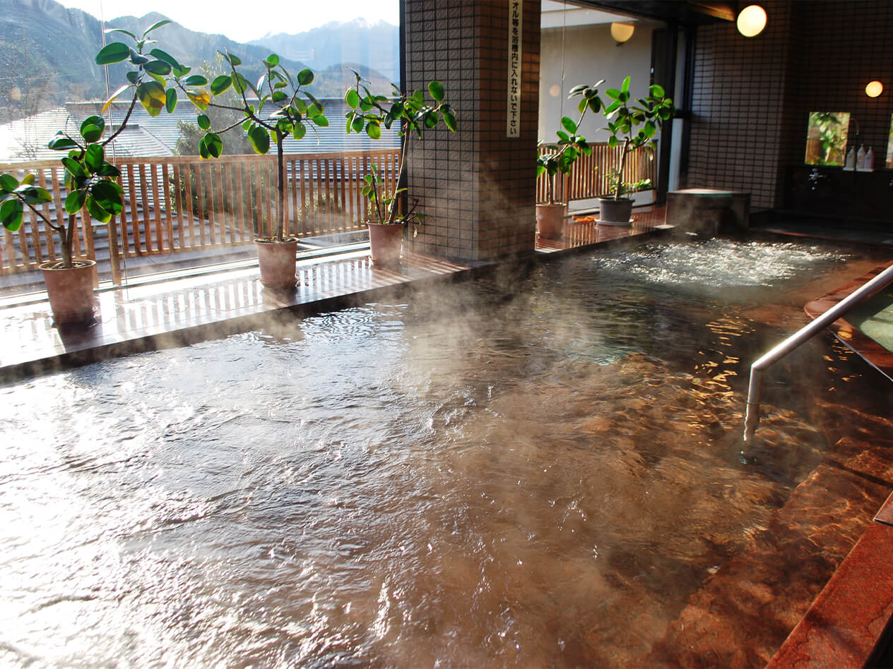 清らかな空気を全身で感じた「尾ノ内渓谷」の次に向かったのは「両神温泉薬師の湯」。木のぬくもりが気持ちよくて、つい長居してしまいたくなる雰囲気です。ここのお湯は肌に吸い付くようなとろみもあって、上がったあとも肌がすべすべ、ポカポカ。湯上がりには、併設された「湯屋食堂」でおやつの“毘沙門氷”をいただきます。