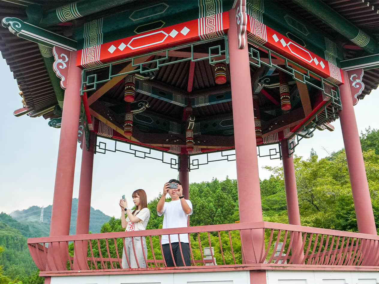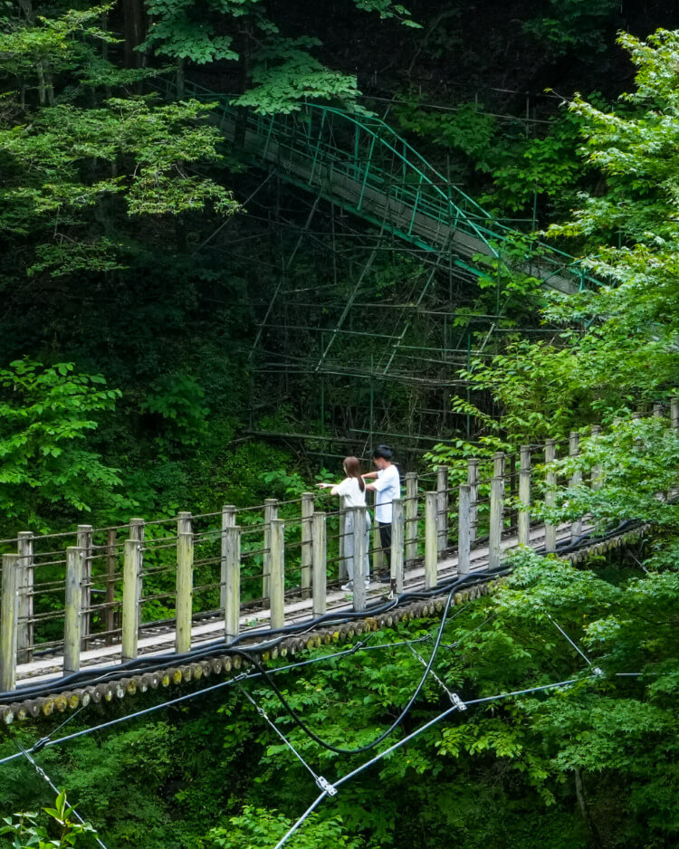 旅の締めくくりは、絶景スポットへ。「ひろば」を出て赤平川を渡り、山沿いの林道を進みます。この道は野生の鹿に出会えることもあり、その臨場感から訪れた人のあいだで“サファリルート”とも呼ばれているそう。諏訪神社〜雲龍寺〜薬師堂〜文殊堂の横を通り抜け、さらに登ると「金精神社」に到着。静寂の中、武甲山や両神山、奥秩父の山々を望む360度の絶景が広がります。