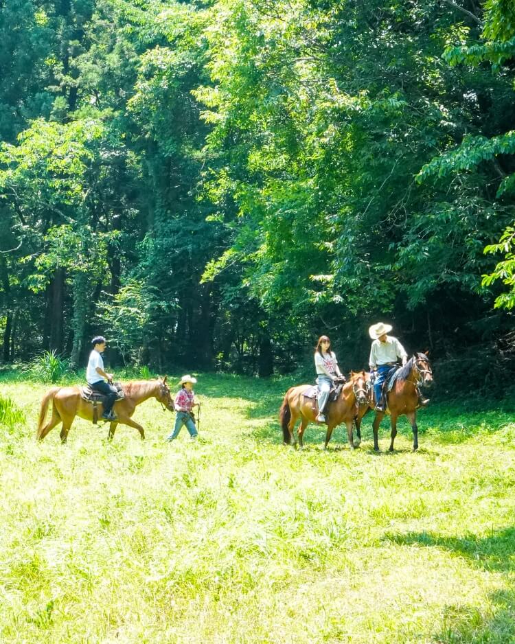 乗馬やつり橋、地元の名店まで、おがのまちでしかできない体験を車で巡る。