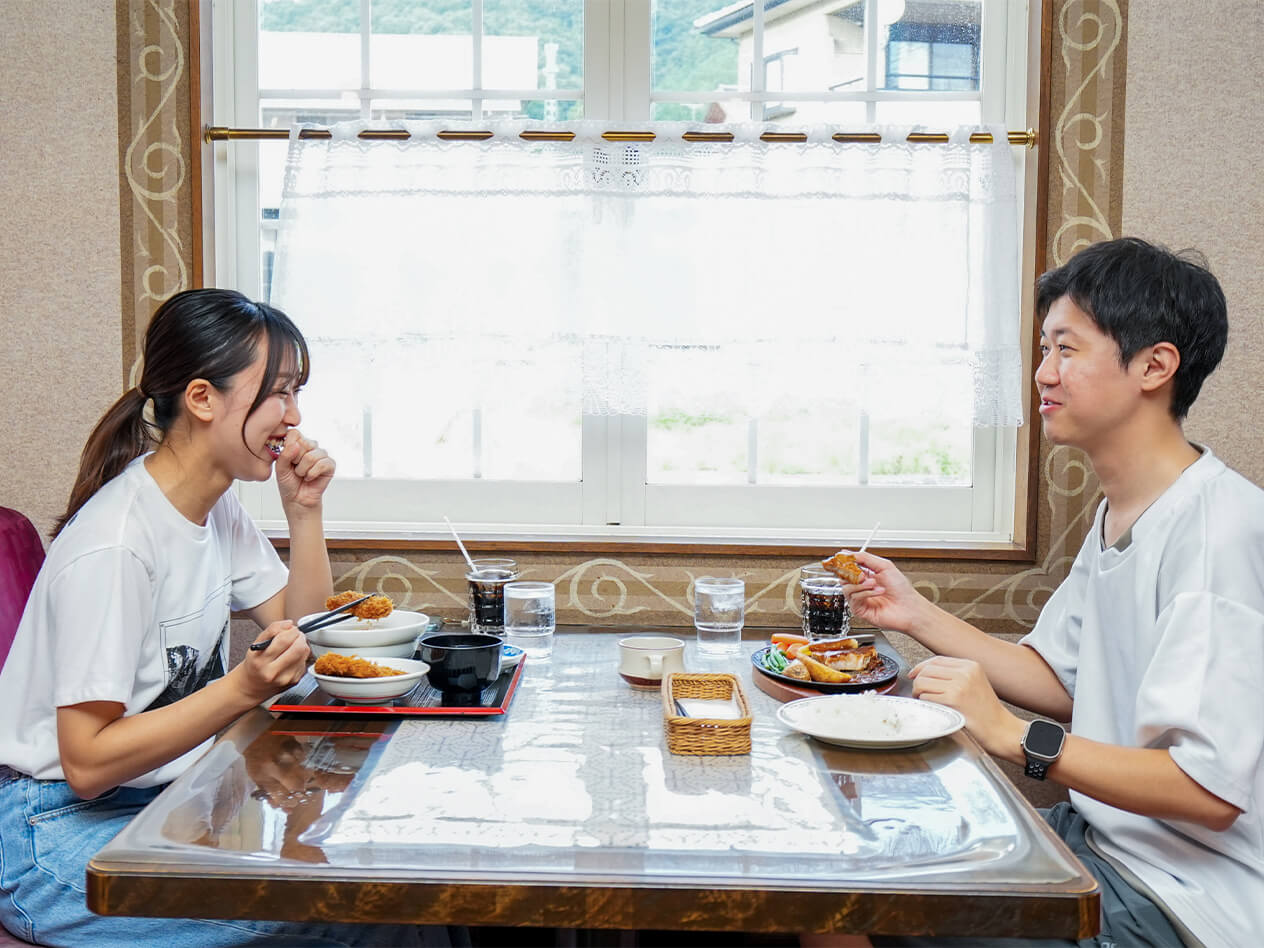山寺散策を終えて向かったのは、昔からおがのまちで愛されている洋食店「レストランイデウラ」。名物の“俺のポークソテー”と、秩父名物“わらじかつ丼”をいただきます。創業時から受け継がれているデミグラスソースがかかったポークソテーは、お肉が柔らかく絶品です。レトロな雰囲気で食事が楽しめ、数々のメディアで紹介されているのも納得です。