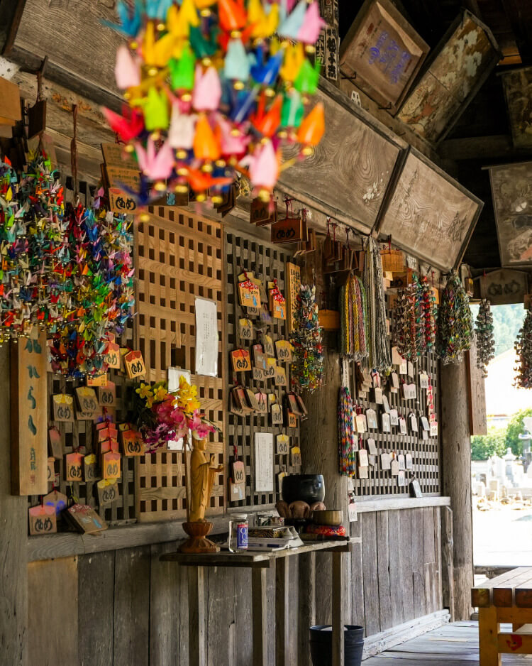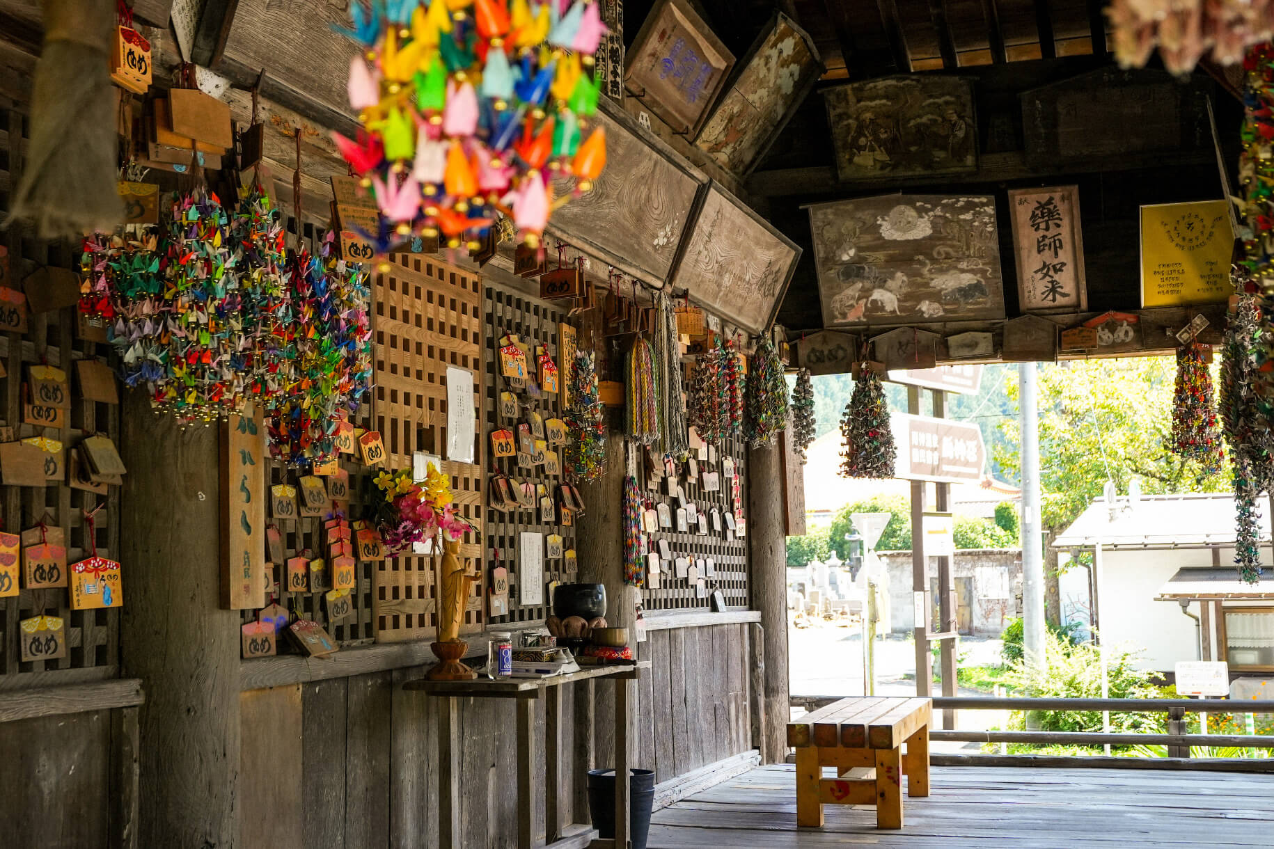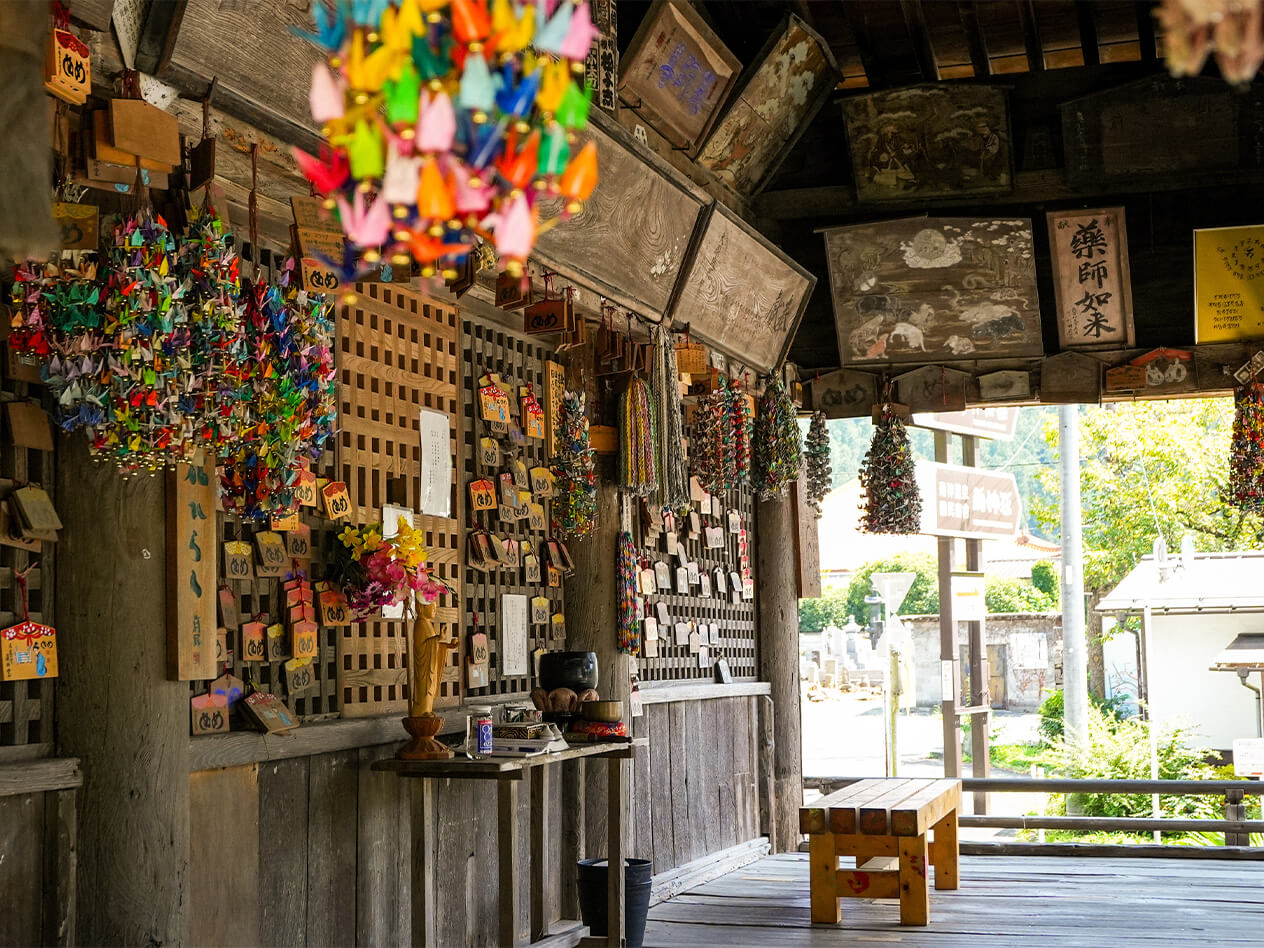 買い物を終え、戦国時代の北条氏邦が再建したという「四阿屋山法養寺 薬師堂」へ。薬師如来は古くから“病を癒す仏”として信仰を集め、なかでも「目の病気に霊験あらたか」とされることから、視力回復や健康を願って多くの人が参拝に訪れるそうです。「両神農林産物直売所」で購入した“めめ絵馬”に健康の願いごとを託し、お詣りをしました。