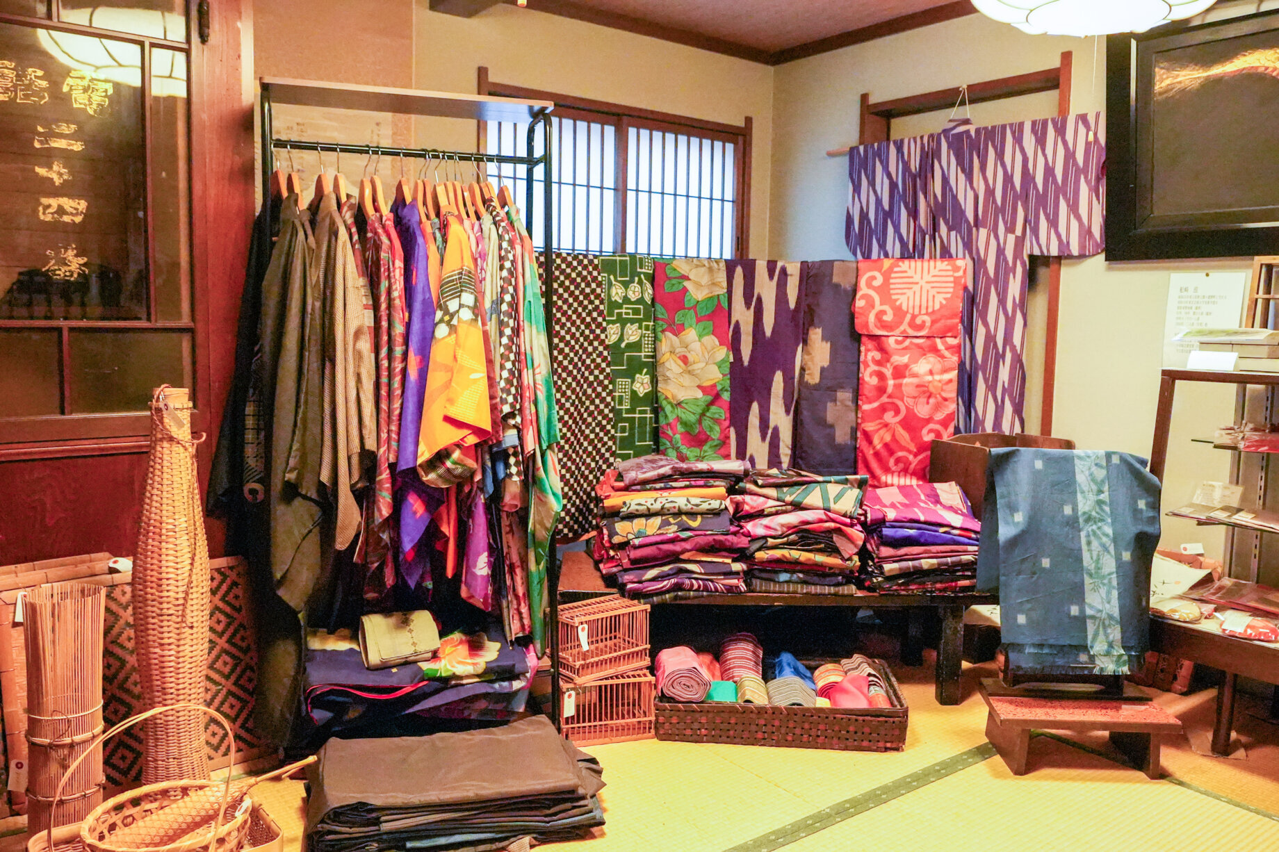 元は明治初期に呉服店として創業した「須崎旅館」。繭を買い付けに来る商人の宿泊がきっかけに、旅館として明治40年から営業を続け、今は4代目女将が暖簾を守り続けています。フロント前にある小上がりには、さまざまな柄の秩父銘仙の着物がディスプレイされ、呉服店からの歴史を感じます。好みの着物を女将さんが着付けてくれ、街歩きができるサービスのほか、小さな子どもが一緒でも少ない荷物で安心して過ごせる「子連れ旅行プラン」や、秩父のジビエや上州牛のしゃぶしゃぶを食べられる「肉肉プラン」など、多岐に渡る旅行プランを選べるのもこの宿の特徴です。
