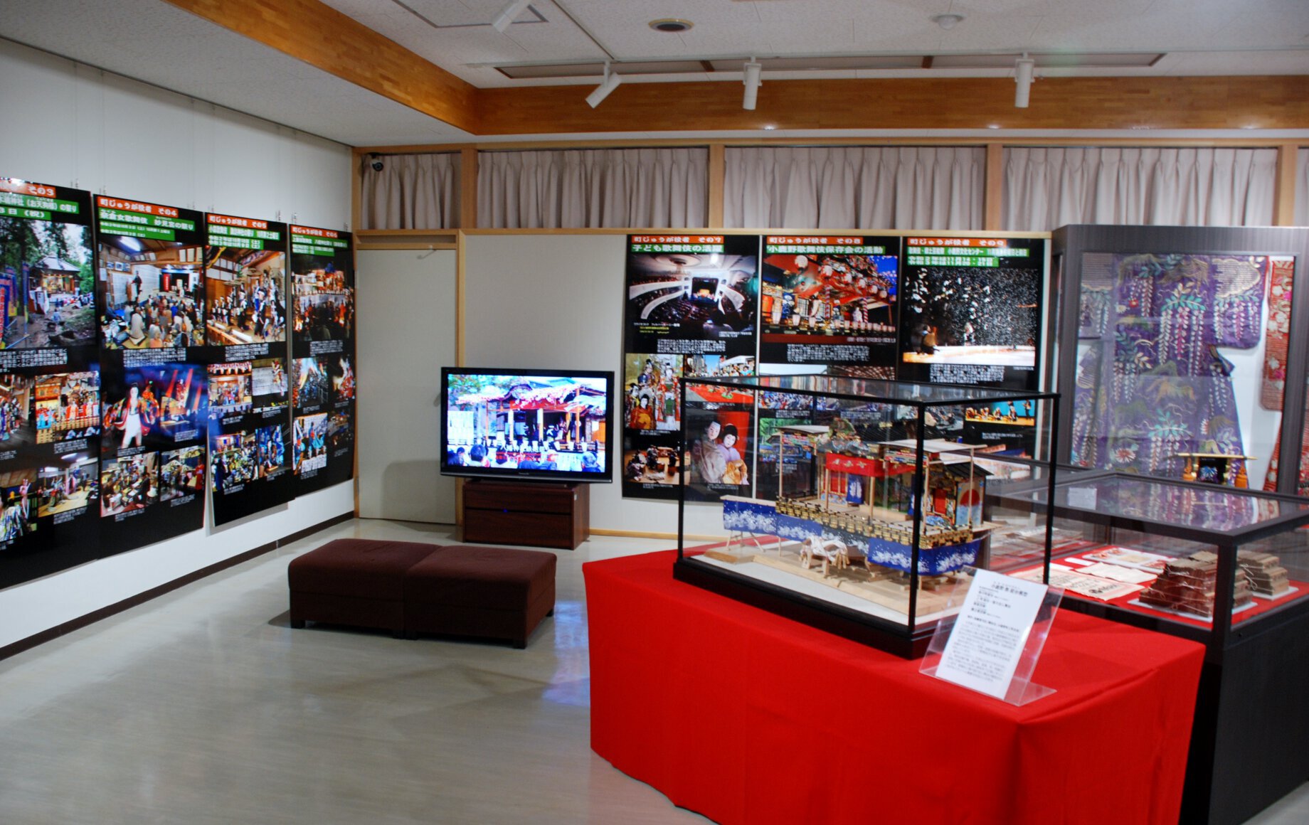 今でもおがのまちでは、町内に6カ所ある歌舞伎の伝承地で年に数回の公演が行われていて、そのさまざまな演目の動画を見られるのも「小鹿野歌舞伎さろん」ならでは。地域によっては祭り屋台(山車)に芸座・花道を張り出す舞台や、麦わらぶきの舞台も現存していたりと、その多様な様子も模型や写真で学べます。さらに下座音楽の楽器に実際に触れることも。お祭りなどで実際に“小鹿野歌舞伎”を経験する前後に、ここで歴史や概要に触れると、より“小鹿野歌舞伎”への興味が深まるかもしれません。