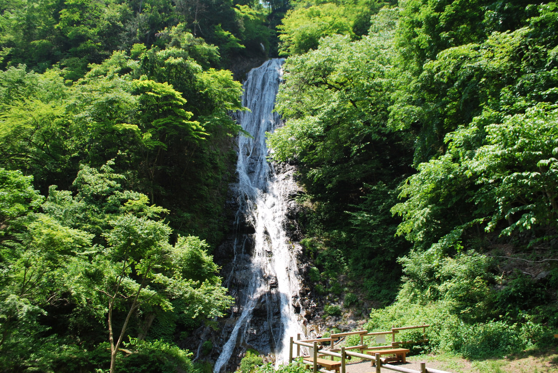 埼玉県内で唯一“日本の滝百選”に選ばれている「丸神の滝」は、日本の百名山の一つでもある「両神山」から流れる小森川の右岸に合流する滝越沢にある滝です。江戸時代後期に編さんされた“新編武蔵風土記稿”でも、滝が多い秩父でこれほど景観の良いものはないと紹介されており、その美しい姿は今も健在。三段になって黒岩を流れ落ちる落差76メートルの滝は、ダイナミックさと繊細さを兼ね揃え、変化に富んだ水の流れを見ることができます。
