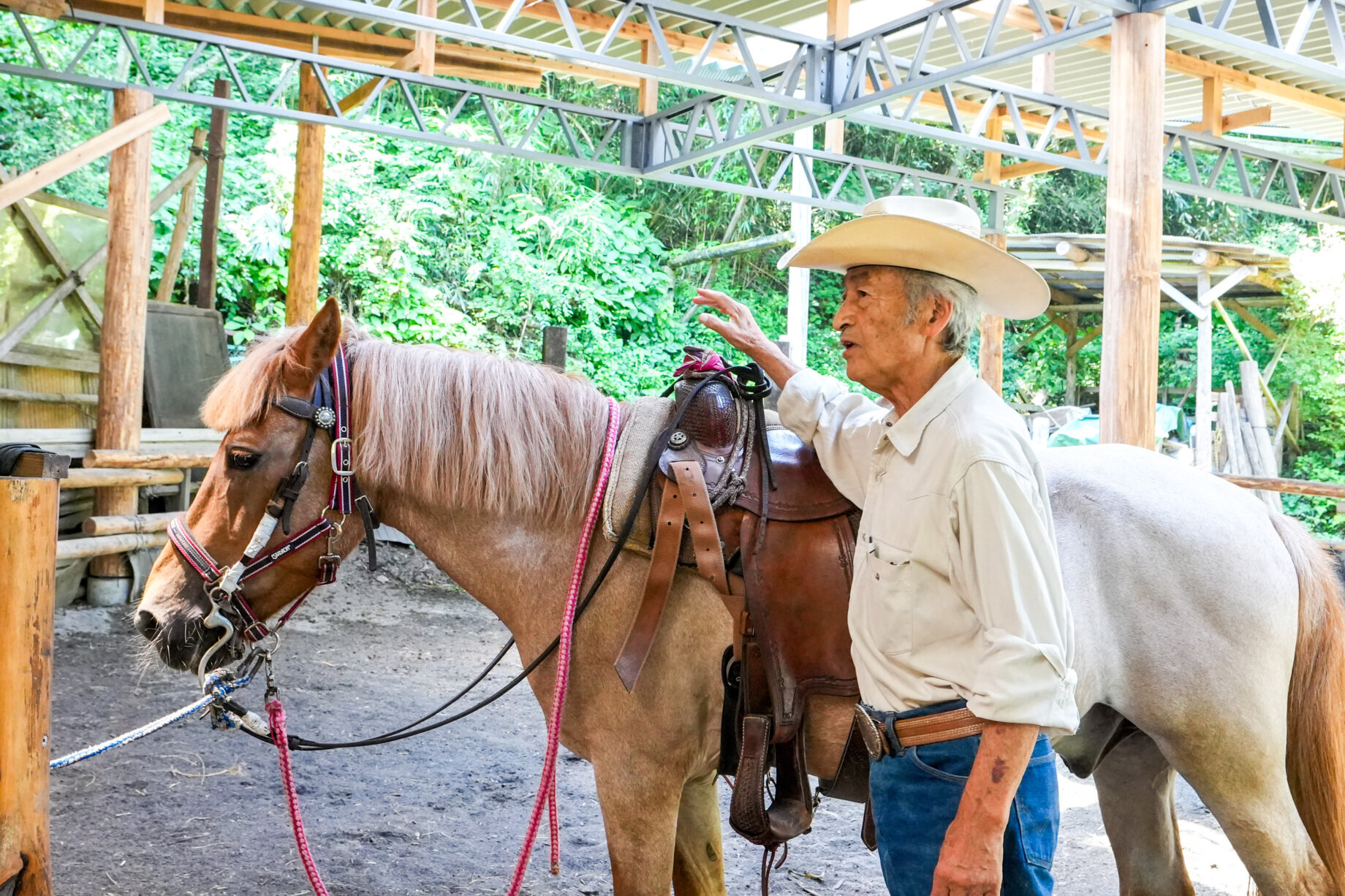 日本のカウボーイ文化の第一人者で、自身も馬を中心に生きているオーナーの犬木孝雄さんが、山を切り拓いて作った牧場「クリオステーブル」。“生活のパートナーとしての馬”との触れ合いや会話を大切にした、ウエスタンライディング(乗馬)を体験できます。これは開拓時代のアメリカでカウボーイが行っていた乗馬スタイルで、馬との一体感を重視するので、人と馬と双方に負担が少ないのが特徴です。馬は自然に動くことができ、体験者は馬と一体となるダイナミック感を味わえます。