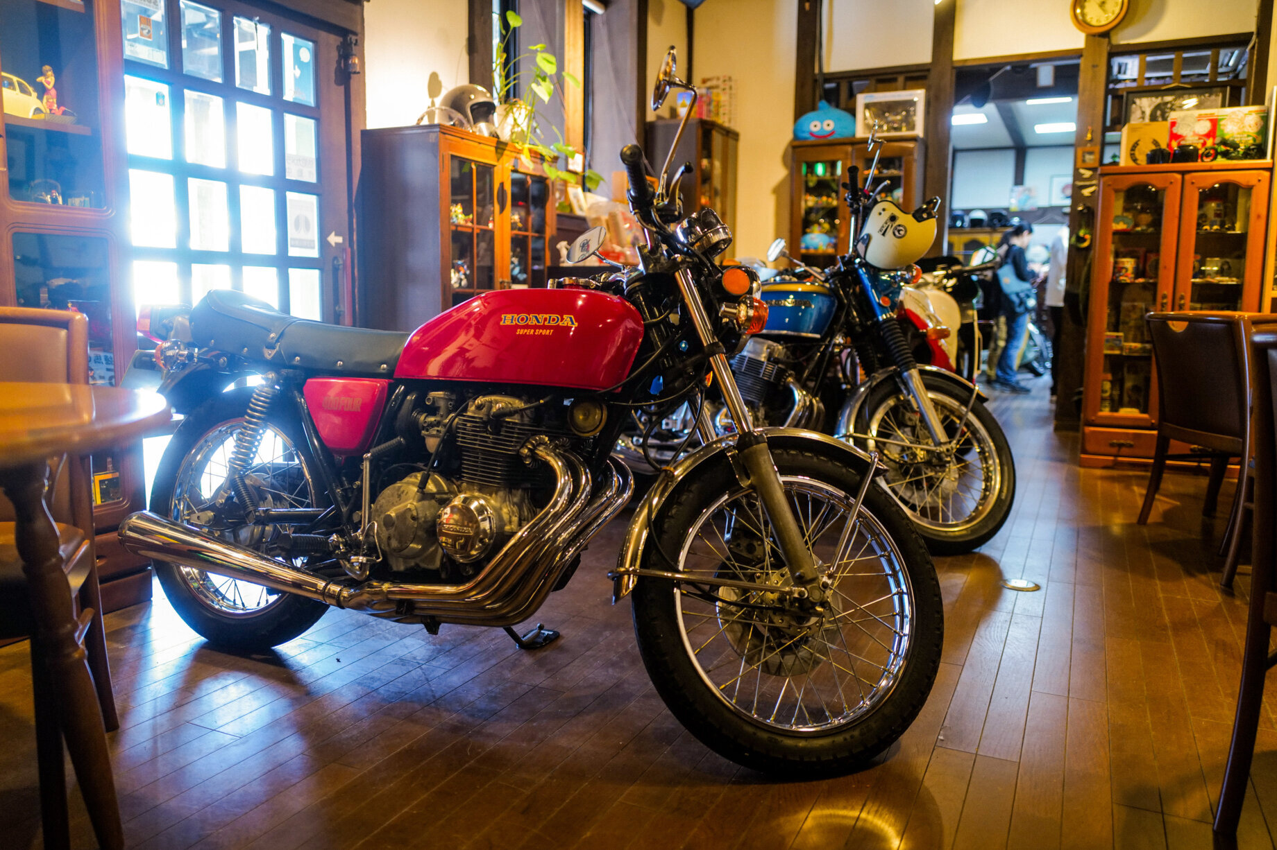 店内に一歩入ると、まるで小さな博物館。ヴィンテージバイクのHONDAエルシノアやCBシリーズ、モトコンポなどの往年の名車が並びます。合わせて展示されているのは、オーナーの好みのフィギュア。バイクに馴染みのない方と一緒に来店しても、楽しめます。現在の場所ではHONDA車がメインに置かれていますが、ファンからの要望で今年中にはアメリカをメインにしたスペースも別場所に出来上がる予定とのこと。また名所が一つ増えそうです。