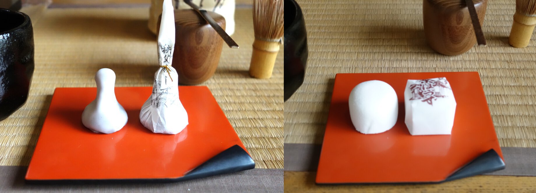 販売されている和菓子は、茶ぼうず、嶺しずく、麦こがし、最中の4種類です。茶ぼうずは、もち米を炒って作った粉に砂糖を混ぜて、こしあんを入れた「かまくら」のような形をした真っ白な和菓子。お茶に仕えるという意味合いで、初代が命名したそうです。嶺しずくは、こしあんにすりみつ(蜜砂糖を練って白くしたもの)をつけて固められた和菓子です。旅の途中に喉を潤してきたという想像のもとに、山のコケ蒸した所から垂れる一滴のしずくをイメージして初代により作られています。そのしずくが手のひらに落ちた瞬間を再現しているのです。麦こがしは、茶ぼうずの姉妹品です。製造工程は茶ぼうずと同じですが、もち米の代わりに大麦の粉を4割ほど炒って入れ、香ばしさを出しています。麦こがしは、中山さんが考案して商品化した和菓子です。4種類の中で、唯一つぶあんを使用している最中も人気があります。あずきの風味が出るように、砂糖の量を控えめにして、その分甘味を感じられるように塩気を足しています。甘い和菓子が苦手な人でも、美味しく食べられるちょうど良い甘さの最中です。