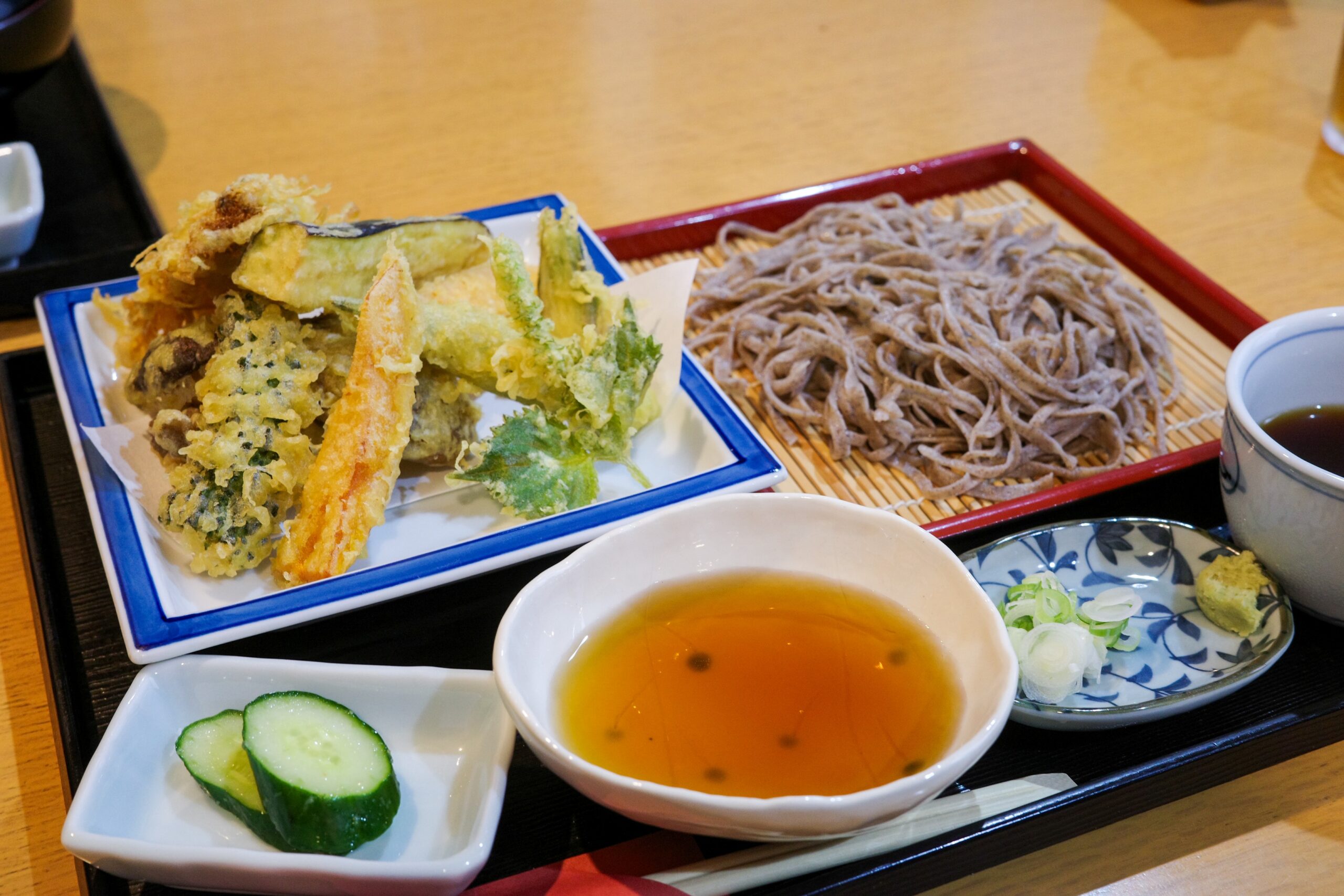 女将の手打ちそばと、旬の野菜の天ぷらセットはボリュームたっぷり