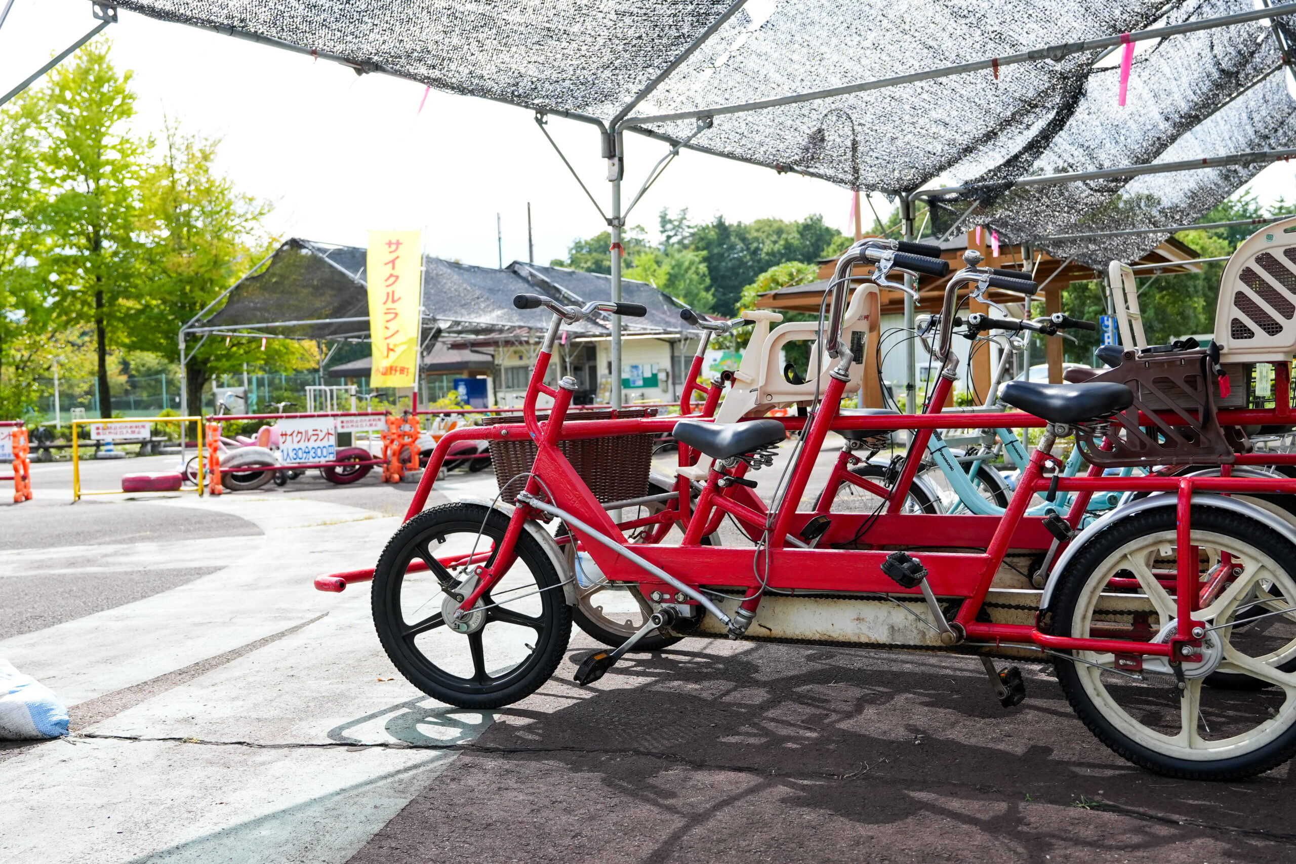 「秩父ミューズパーク」南口にある、おがのまちサイクリングセンターでは普通自転車が約100台と家族で乗れるような特殊自転車が約30台用意されています。特に変わり自転車は、2人乗り、3〜4人乗りや、ここでしか乗れないような6人乗りのものまであり、家族だけでなく、グループ旅行で訪れる人にも人気。園内を自由に乗ることができ、南口から北口方面への緩やかなアップダウンした道を新鮮な空気を吸いながら、サイクリングするのはとても気持ちの良い時間です。また、受付施設脇の敷地には小さなお子さま向けの“おもしろ自転車”をそろえたサイクルランドもあるので、年齢問わず自転車を楽しむことができます。