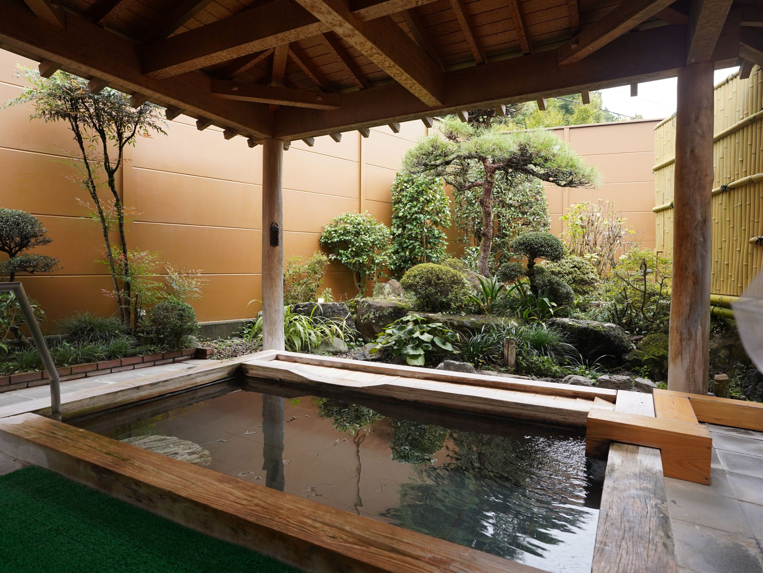 「小鹿荘」では、露天風呂を備えた大浴場から貸切露天風呂(宿泊者限定・要予約)まで揃い、じんわりと温まる、さらっとした肌ざわりの良質なアルカリ泉質の温泉を楽しめます。露天風呂では、日本らしい四季折々の自然を望む庭園を眺めながら入浴でき、疲れた体をゆっくりとほぐしてくれそうです。