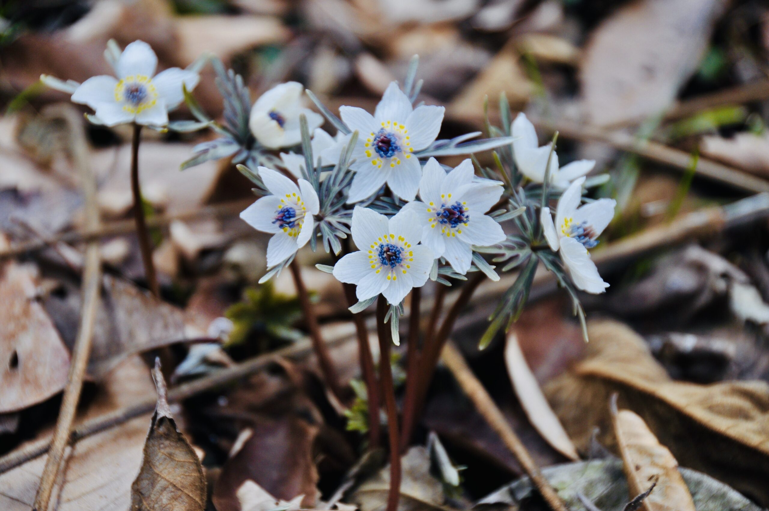 足を踏み入れると、視界いっぱいに「白い花畑」が広がるというより、静かな林床に無数の光点が浮かぶような感覚です。派手さはありませんが、写真に収めると、不思議とその魅力に吸い込まれていきます。